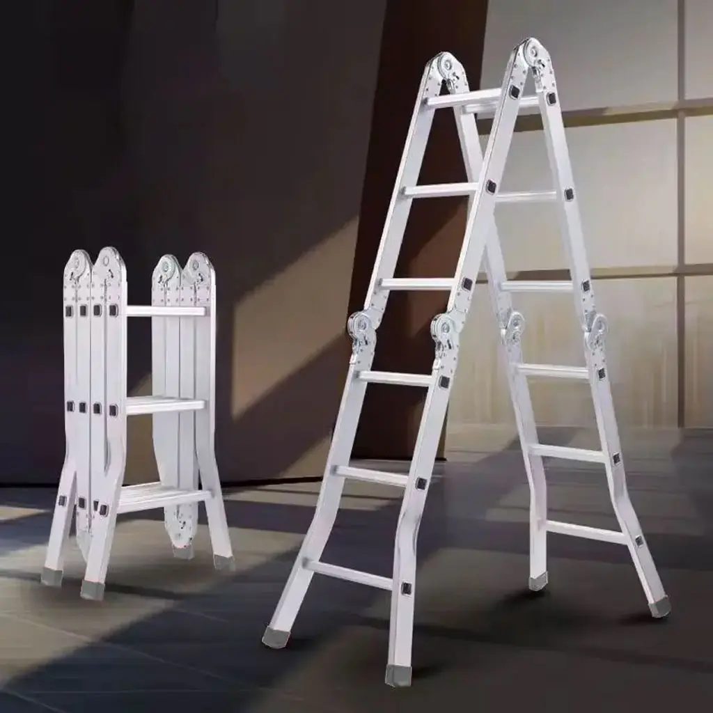 Kiểu dáng: Thang nhôm gấp làm 4 đoạn, sử dụng được nhiều kiểu dáng: chữ A, duỗi thẳng chữ I, chữ M, U, L. Xếp gọn khi không sử dụng.